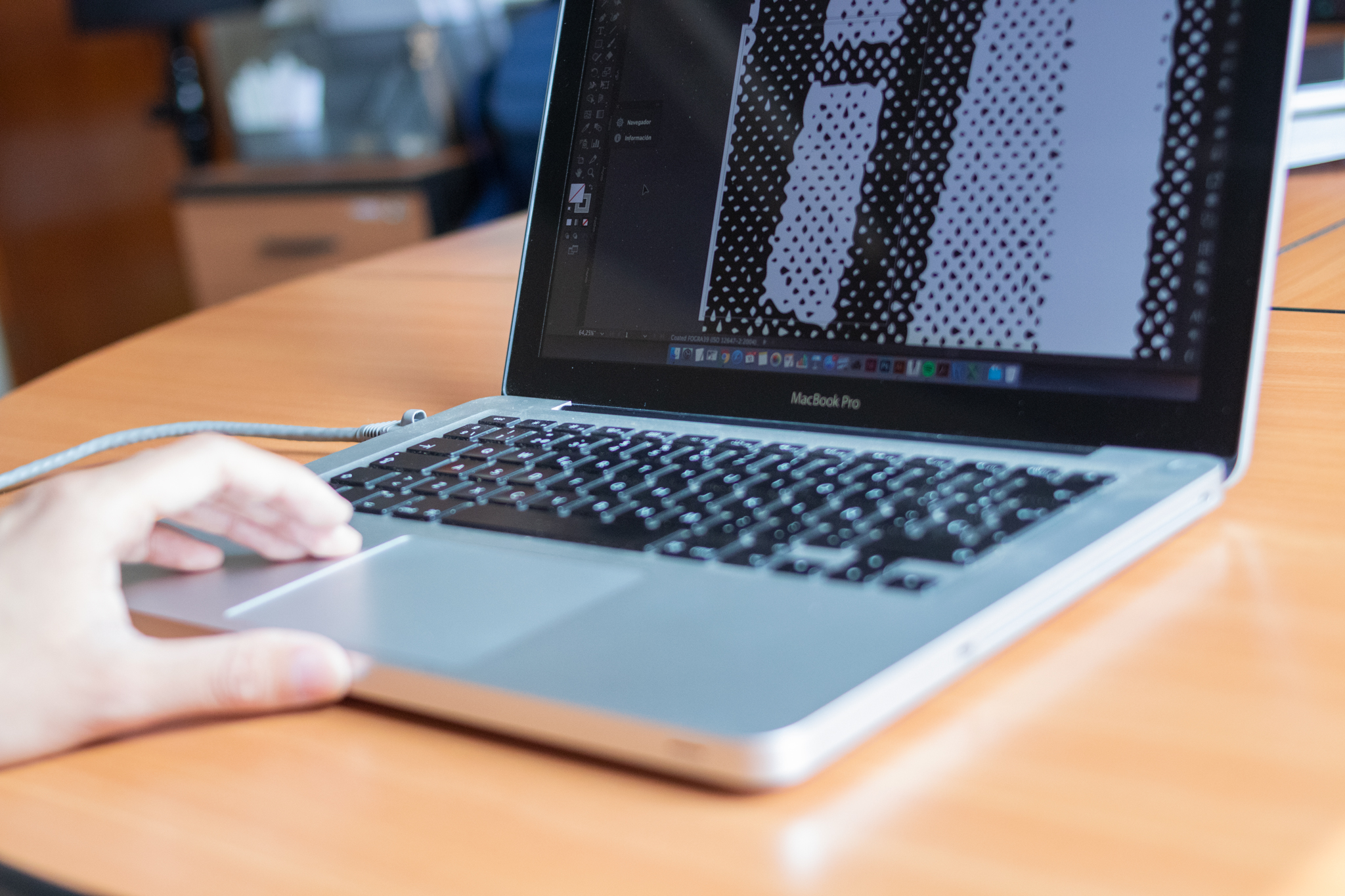 La instalación consiste en revestimientos de papel integrados a un muro, que contienen imágenes modulares y que en conjunto construyen una figura de doble visualidad “cerca-lejos”; esta condición se resuelve mediante la técnica de imagen de trama o semitono que se configura en base a puntos de diversas magnitudes y que dispuestos ordenadamente en la propia trama terminan por formar la figura. Cuando esta circunstancia se lleva a magnitud mayor, como en el caso de una gigantografía, y por tanto los puntos a diámetros considerables, se necesita de una distancia respecto del conjunto de puntos para apreciar la figura. Más que una transfiguración hay una abstracción de la forma en la medida de la distancia; cuanto más cerca, mayor nivel de abstracción. Depende entonces de la dimensionalidad del recurso punto y de la distancia, el grado de abstracción; mientras me acerco se pierde el contorno de la figura, aparece el fondo. (TEXTO PARA ENSAYO EN PUBLICACIÓN LIBRO PROYECTOS CIAUV 2020-2021)